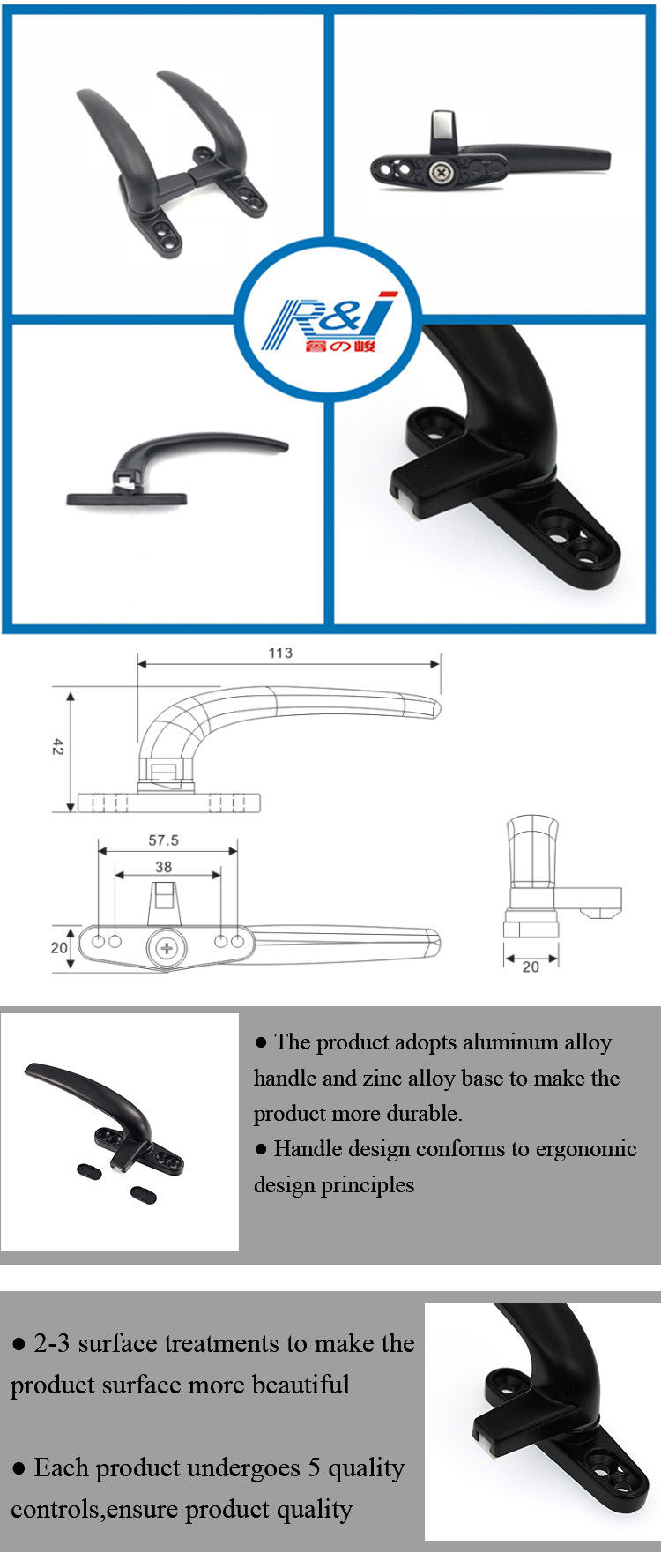 这是一家集开发、生产、销售为一体的建筑门窗五金专业制造商。 拥有“R&J”自有品牌。 主要产品:摩擦撑条、拉手、窗锁、门锁、铰链、门窗五金。