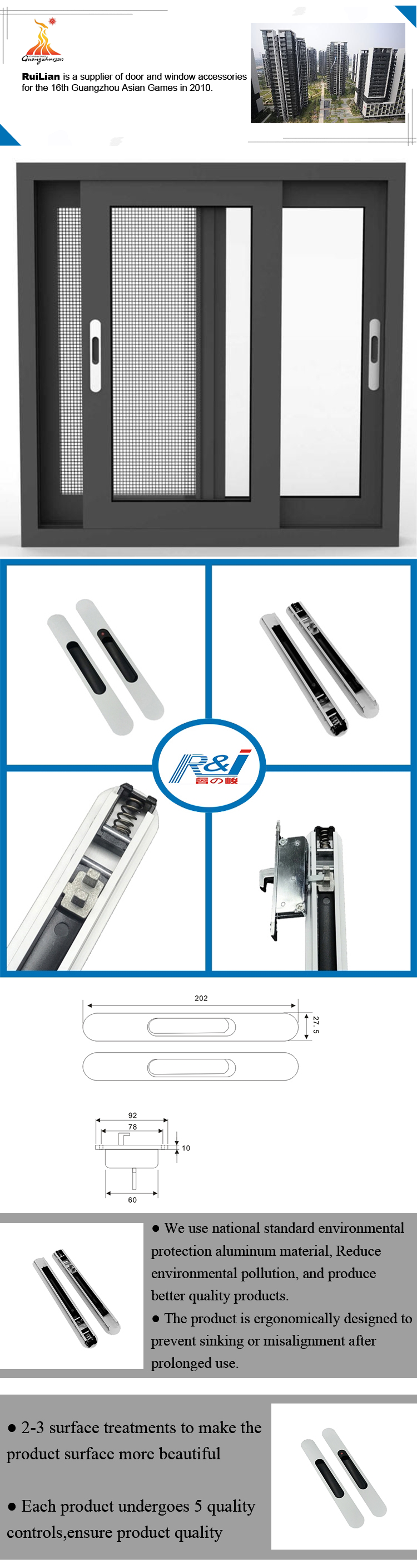 这是一家集开发、生产、销售为一体的建筑门窗五金专业制造商。 拥有“R&J”自有品牌。 主要产品:摩擦撑条、拉手、窗锁、门锁、铰链、门窗五金。